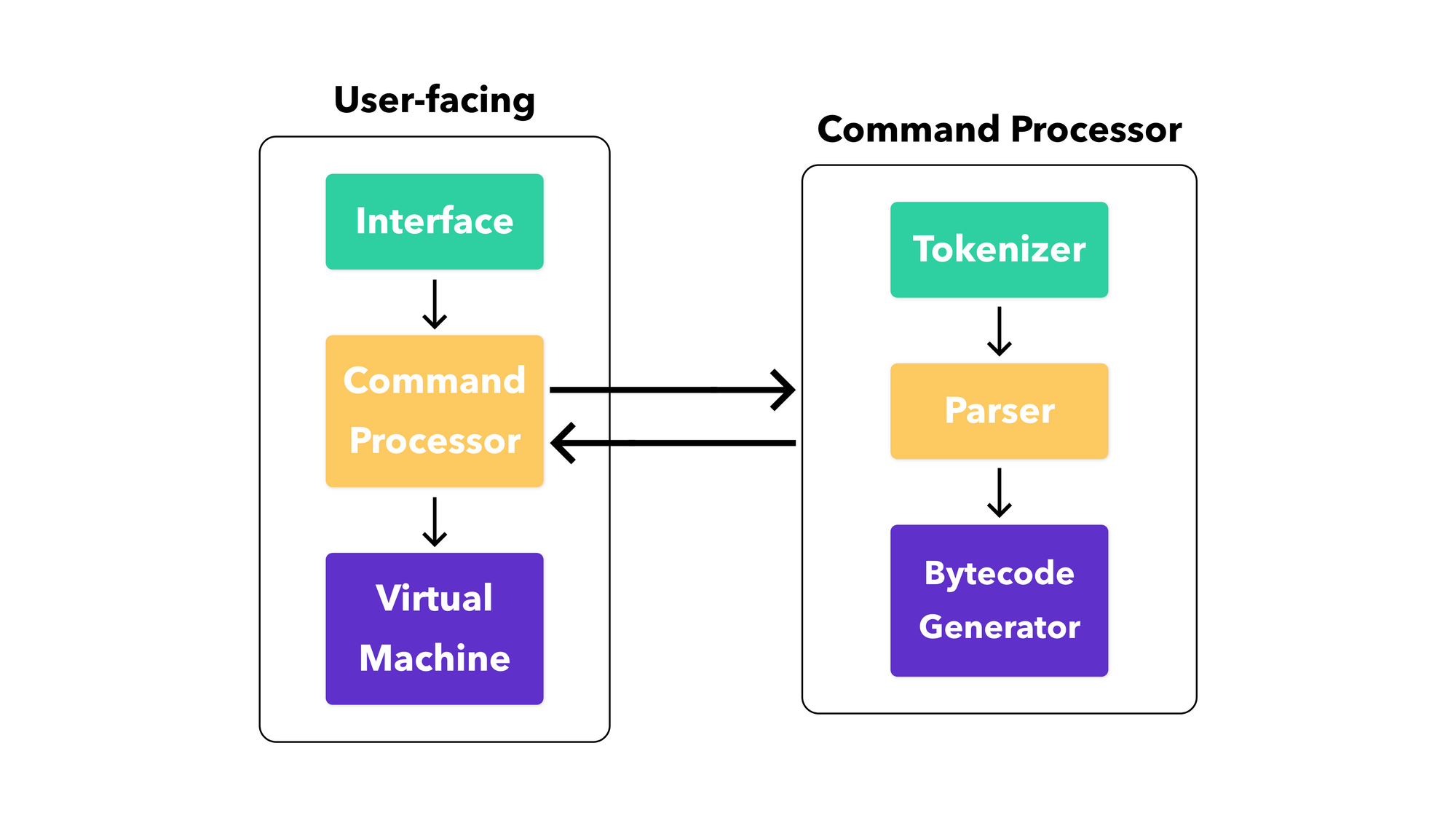 The user-facing side of the database deals purely with breaking down queries into smaller parts (or tokens) that will soon be dumped into the table by the backend.